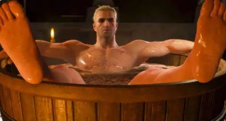 Mimo że serial oparty jest na książkach, a nie grach, nie zapomniano w nim o ukłonie w stronę graczy, dodając kultową scenę w wannie. Henry chciał nawet wynurzyć stopy w tej scenie – oczywiście jako hołd dla słynnego fragmentu z gry. Niewiele brakowało, a cieszylibyśmy się tym gorącym widokiem – niestety ostatecznie zrezygnowano z tego pomysłu przez niestandardowy rozmiar wanny i sugestię kogoś z planu, że to mogłoby być lekką przesadą.