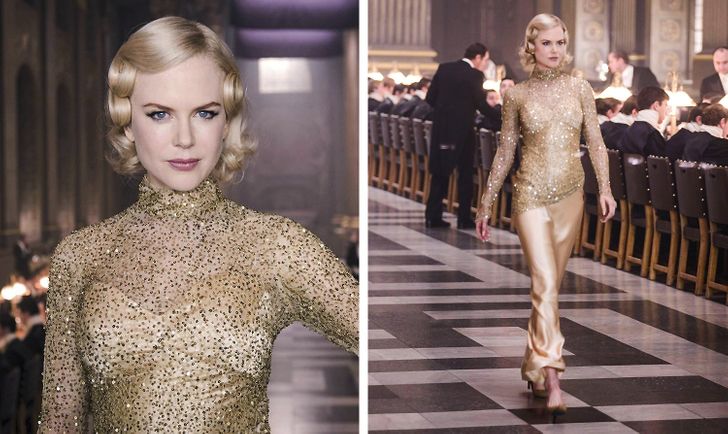 Złota suknia noszona przez Nicole Kidman w filmie „Złoty kompas” została stworzona z małych kawałków koronki. Projektantka Ruth Myers, która odpowiada za tą kreację, podkreśla, że czerpała inspirację z połączenia starej mody Hollywood z czystym glamourem. Jej celem było stworzenie wrażenia, że w jej sukni aktorka, zamiast zwyczajnie chodzić, raczej majestatycznie płynie po parkiecie.