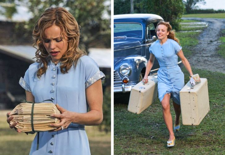 Allie powraca do Noah ubrana w prostą, ale niezwykle piękną sukienkę zapinaną na guziki. Ma ją na sobie w jednej z najważniejszych scen filmu przedstawiającej romantyczny pocałunek w deszczu obojga bohaterów. Projektantka Karyn Wagner wspomina, że spędziła mnóstwo czasu na stworzenie tej kreacji, by w jak najlepszym stopniu odzwierciedlała ona nie tylko epokę, ale także wewnętrzne rozdarcie bohaterki. Jej zdaniem kolor sukienki ma przypominać o nadziei.