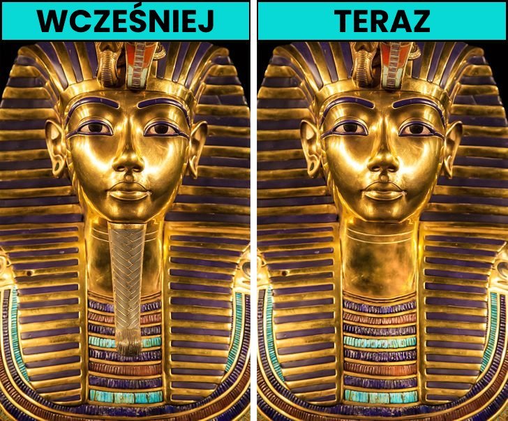 Maska grobowa faraona Tutanchamona jest symbolem Egiptu i jednym z 10 symboli naszej cywilizacji. Została odkryta w 1922 roku, przeszła przez wiele wojen i rewolucji, ale w 2014 roku została uszkodzona przez pracowników muzeum. Przypadkowo strącili mu brodę i próbowali ją z powrotem przykleić klejem epoksydowym, aby ukryć swój błąd, co jeszcze bardziej zaszkodziło artefaktowi. Oszustwo zostało ujawnione w 2016 roku i zszokowało historyków na całym świecie.
