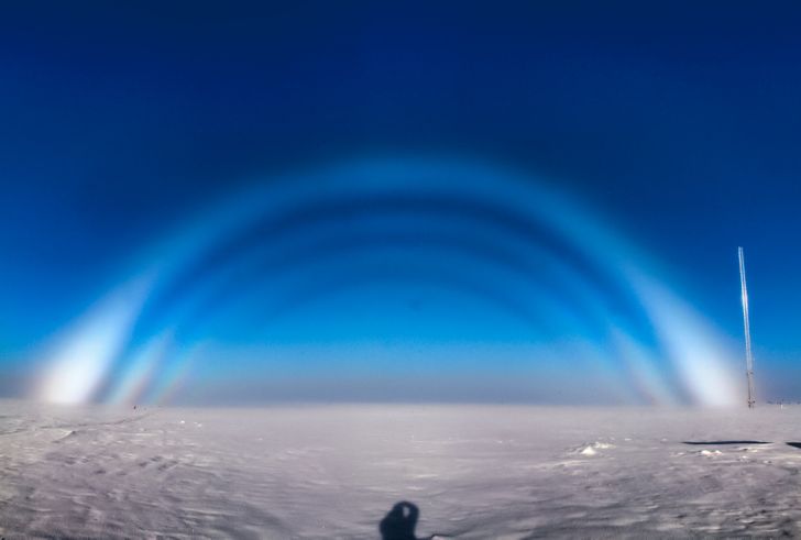 Łuk mgielny lub biała tęcza to bardzo rzadkie zjawisko, które pojawia się podczas mgły (a nie deszczu jak w przypadku zwykłej tęczy). Można go zobaczyć tylko wtedy, gdy w atmosferze znajdują się bardzo małe krople o promieniu do 0,05 mm i gdy stojąc tyłem do słońca, patrzysz w stronę mgły. Co ciekawe, może się ona pojawić nawet w nocy, gdy księżyc na niebie jest dość jasny, i wtedy nazywana jest księżycowym łukiem.