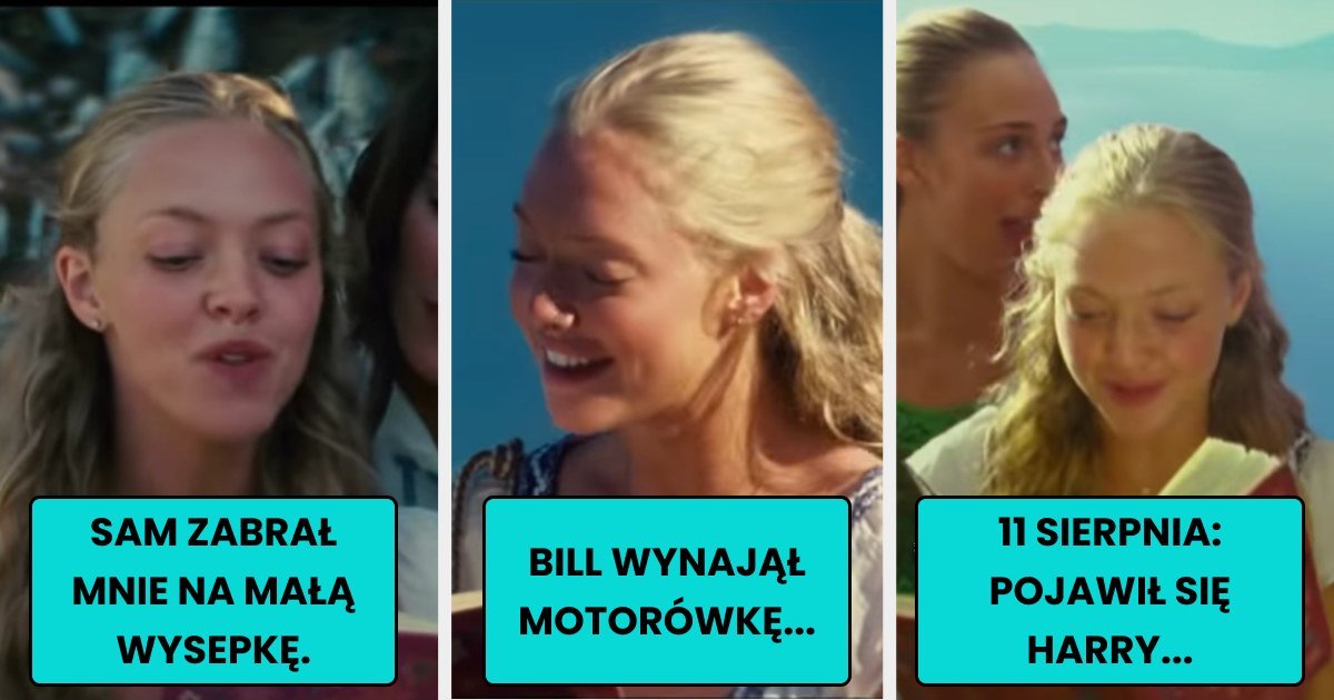 4. W „Mamma Mia!” pamiętnik Donny mówi, że najpierw przespała się z Samem, jednak w retrospekcjach w „Mamma Mia! Here We Go Again” Donna sypia z Samem dopiero po spotkaniu z Harrym i Billem.