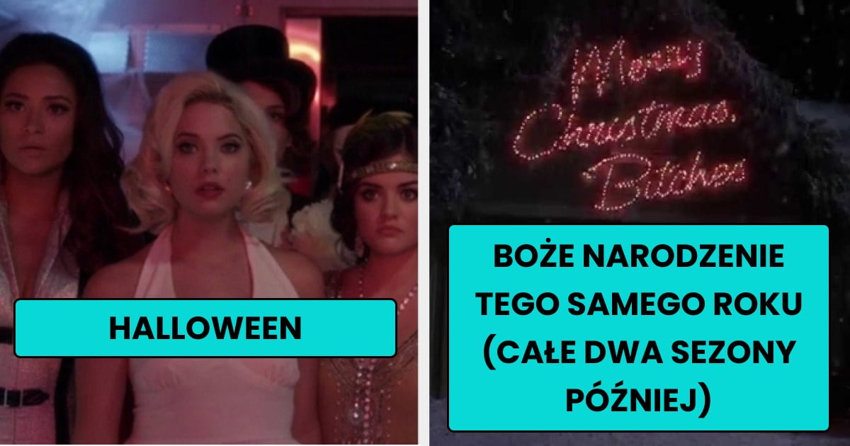 Bohaterki w 3. sezonie rozpoczynają rok szkolny, a w 13. odcinku pojawia się Halloween. Teoretycznie wszystko gra, ale… Boże Narodzenie podczas ich ostatniej klasy nie ma miejsca aż do 13. odcinka sezonu 5. (jeśli wydaje Ci się, że pamiętasz odcinek Halloween z sezonu 4., który wskazuje na to, że minął kolejny rok, to tak naprawdę była to uroczystość z okazji Święta Założycieli Ravenswood). Oznacza to, że potrzeba było aż 2 sezonów, aby upłynęły tylko 2 miesiące.