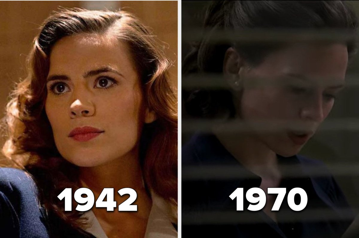 10. Czas zatrzymał się także dla Peggy Carter, o czym świadczy minimalna różnica między nią w filmie „Kapitan Ameryka: Pierwsze starcie” i w scenie podróży w czasie w „Avengers: Endgame”.