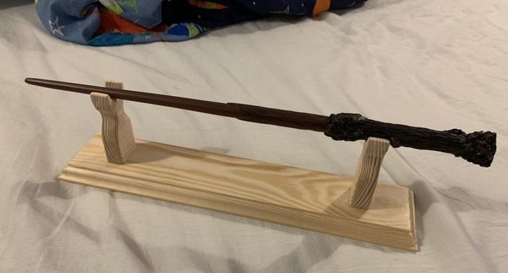 „W zasadzie o obróbce drewna nie wiem nic, ale mój syn poprosił mnie o zrobienie stojaka na różdżkę do Harry’ego Pottera. Jestem całkiem zadowolony z tego, jak to wyszło!”