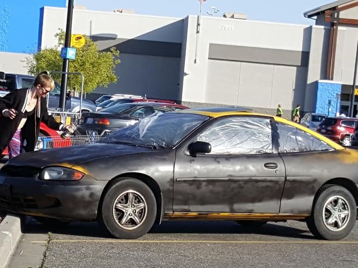 „Ta kobieta na środku parkingu malowała sprayem swój samochód na czarno…”.