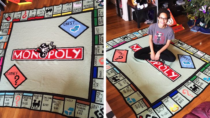 „Spójrzcie na ten ogromny koc, który uszyła dla mnie moja mama!”.