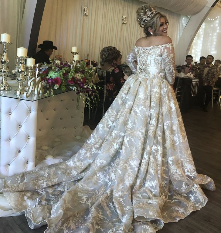 „Moja mama uszyła tę suknię ślubną, ręcznie dodając do niej mnóstwo klejnotów. Miesiącami spędzała cały swój czas, ciężko nad nią pracując – czasami nie miała nawet chwili na sprzątanie czy robienie jedzenia. Moja mama jest mega utalentowana i chcę, żeby wszyscy o tym wiedzieli!”.