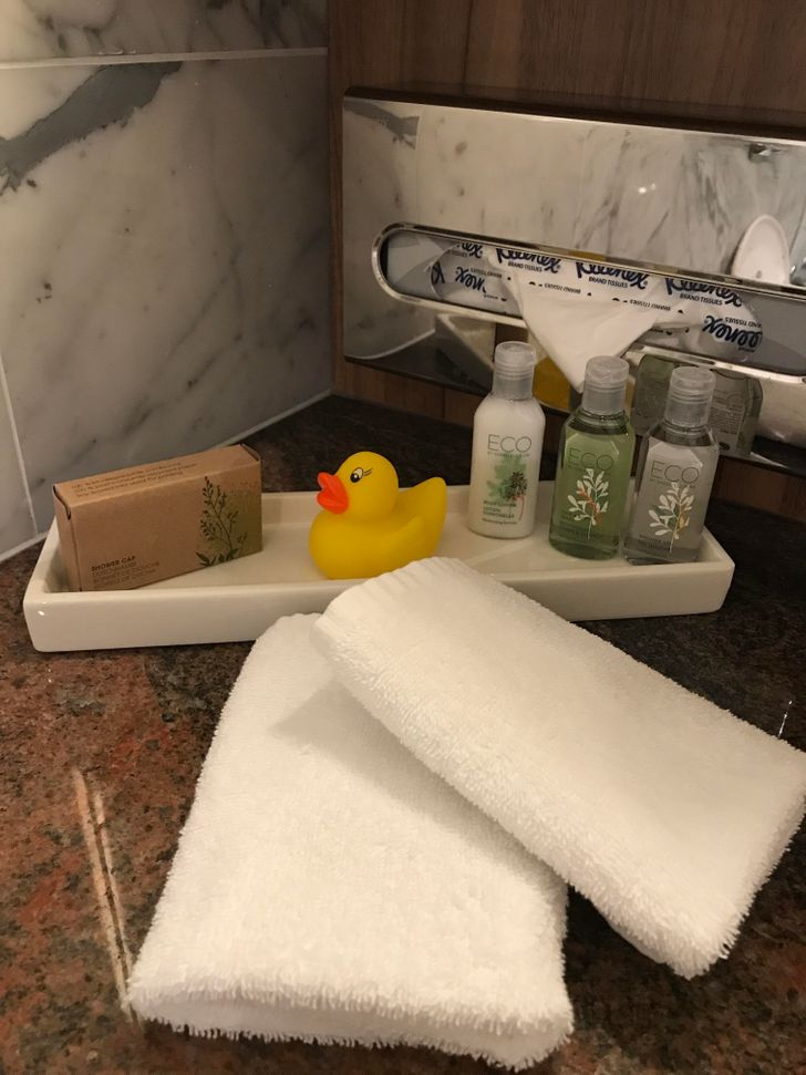 15. „Mój hotel w Zurychu zapewnia gumowe kaczuszki i malutkie szampony.”