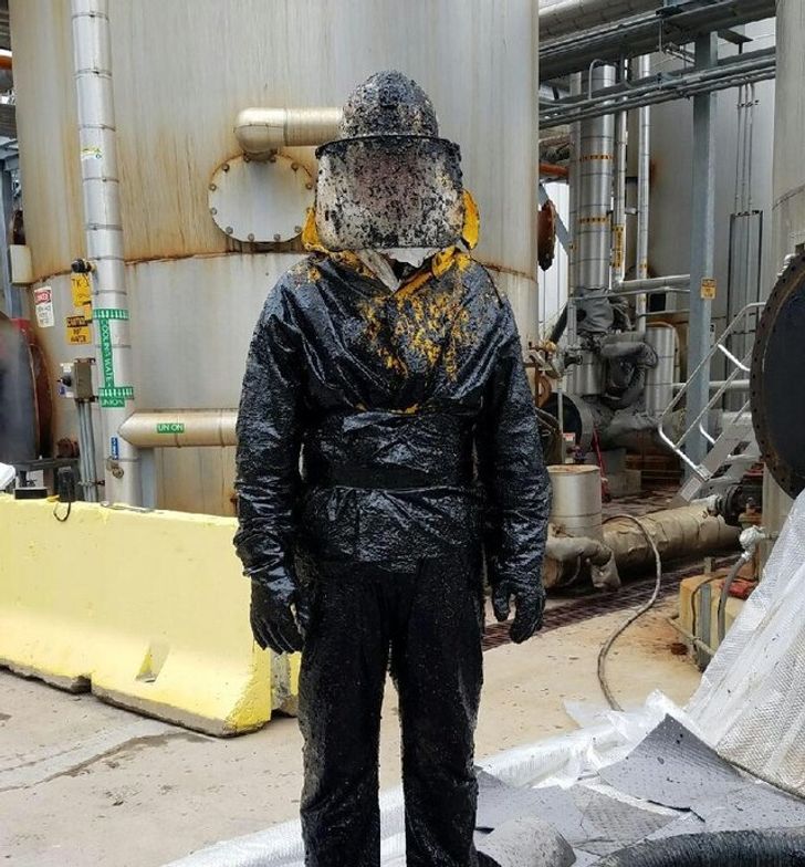 „Jakiś czas temu musiałem wysadzić zbiornik z asfaltem. Miałem na sobie jaskrawożółty płaszcz przeciwdeszczowy.”