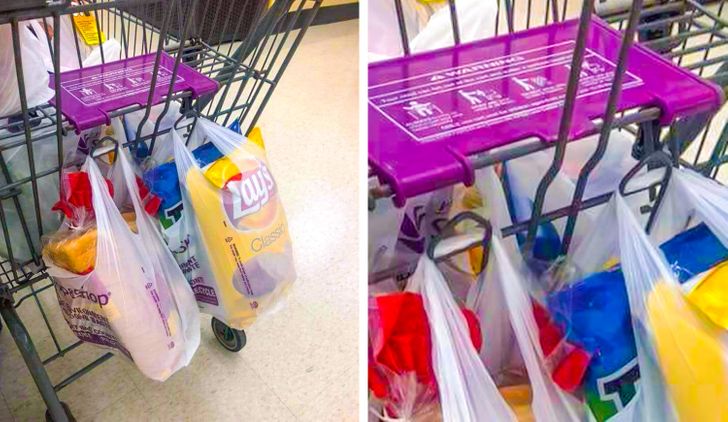 8. Dotychczas nie zdawaliśmy sobie sprawy, że te części wózka służą jako wieszaki do dodatkowych siatek na zakupach!