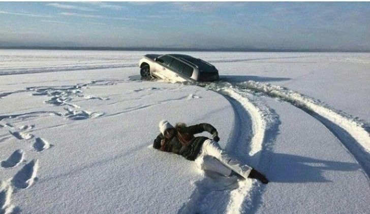 3. Ta pani najwyraźniej pomyślała, że jej kusząca poza na tle zimowego krajobrazu odciągnie uwagę męża od drugiego planu…