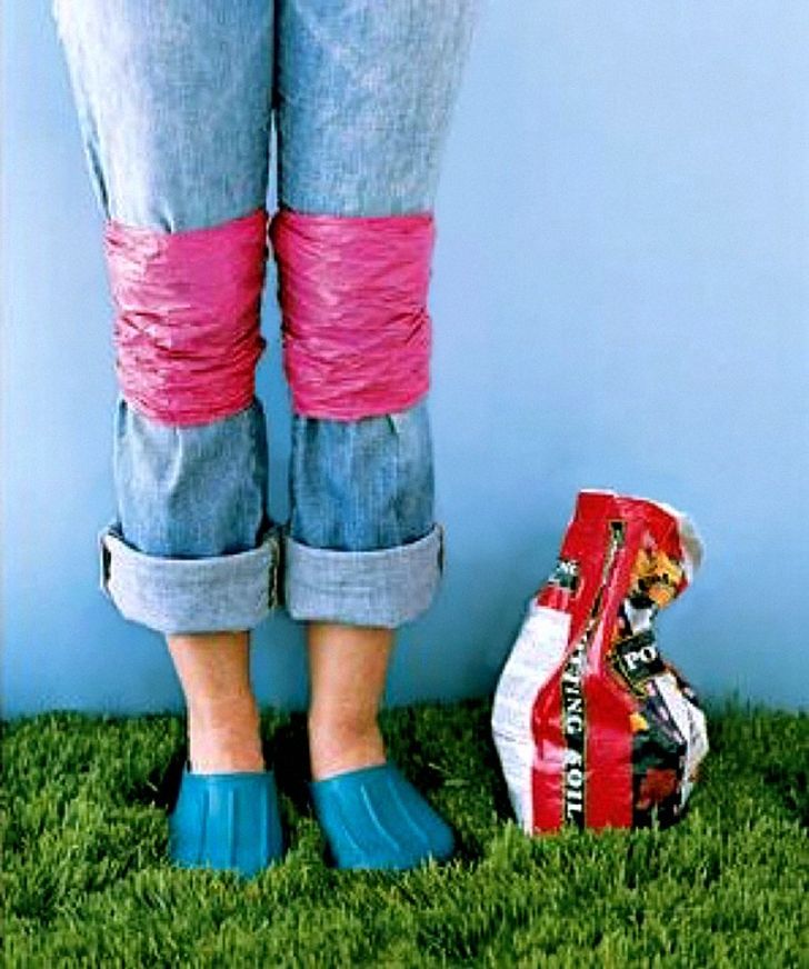 Owijki z plastikowych torebek zapobiegną zniszczeniu ulubionych dżinsów przez brud i zanieczyszczenia. Wystarczy owinąć kolana zwykłymi plastikowymi workami!