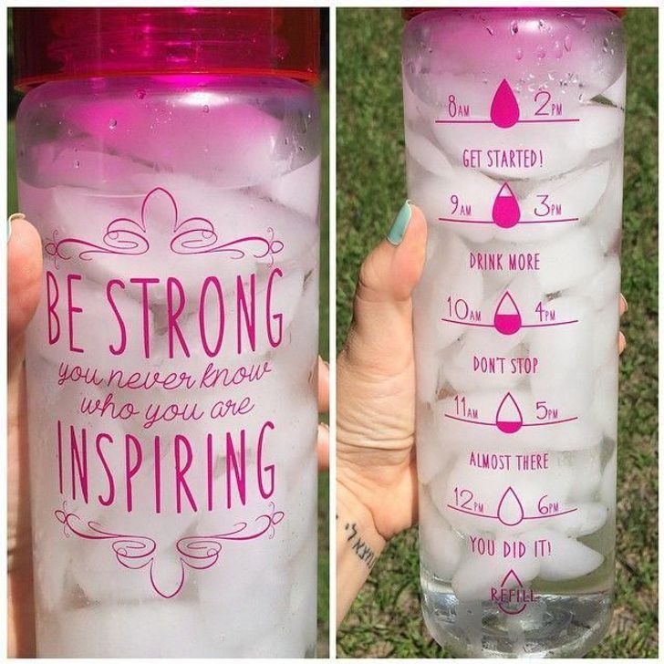 Oto świetny sposób na kontrolowanie dziennego spożycia wody. Narysuj flamastrem linie na butelce z wodą, a następnie wpisz godzinę obok zaznaczonego poziomu. Oznaczenie to będzie wizualnym przypomnieniem o konieczności picia wody i pomoże Ci osiągnąć dzienne zapotrzebowanie na wodę.