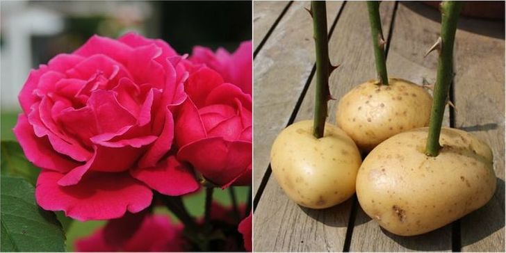 Oto sprytna wskazówka dotycząca uprawy róż z sadzonek. Przed sadzeniem należy wcisnąć dolne końce sadzonek w małe ziemniaki. Wilgoć i składniki odżywcze zawarte w tych warzywach pozwolą kwiatom rozwinąć zdrowe korzenie.