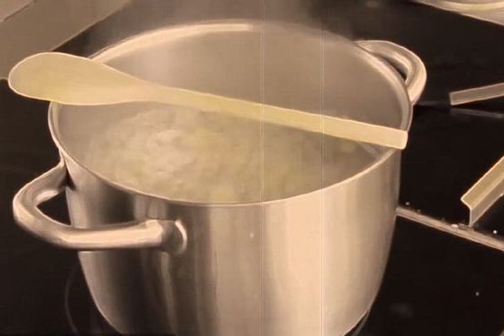 Ta stara sztuczka nigdy nie zawodzi. Aby nie dopuścić do zagotowania się wody w garnku, połóż na nim drewnianą łyżkę. Jeśli woda zacznie się zbyt mocno gotować, łyżka zatrzyma bąbelki i nie dopuści do szybkiego przelania się płynu na zewnątrz garnka.