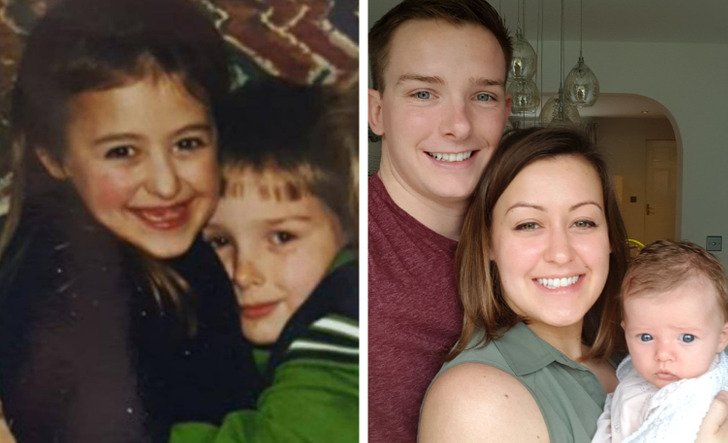 8.”Moja dziewczyna, teraz żona, i ja w wieku 6 lat i 26 lat. Bonus: nasza 9-tygodniowa córeczka.”