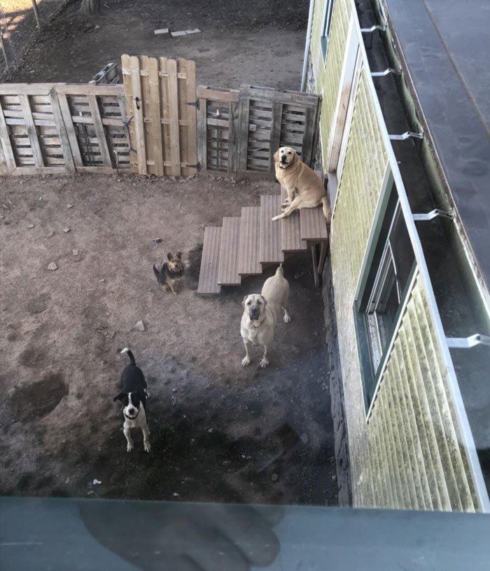 42. „Czasami rzucam przez okno psie przysmaki dla psów moich sąsiadów. Oto, co widzę, kiedy wyglądam przez okno.”