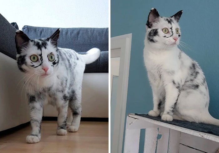 22. Elli urodziła się czarno-biała, a w ciągu trzech lat stała się prawie całkowicie biała z powodu bielactwa nabytego.