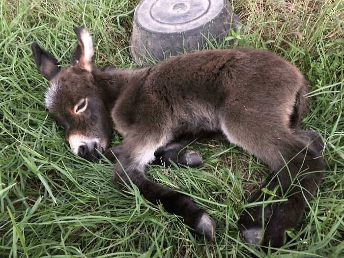 31. „Miniaturowy osiołek mojej kuzynki właśnie pojawił się na świecie!”