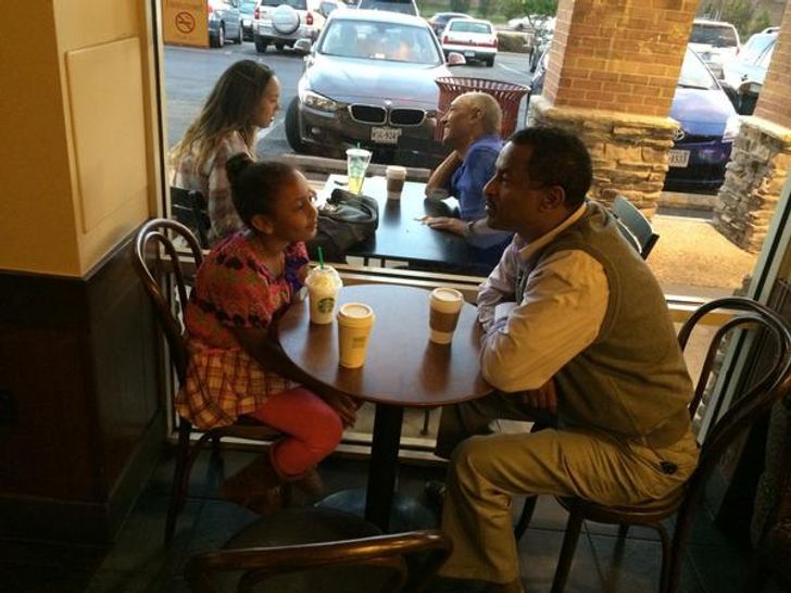 „Pewien facet w Starbucksie zrobił to zdjęcie, po czym podszedł do nas i powiedział, że wyglądało to tak, jakby obok nas siedziała starsza wersja nas samych”.