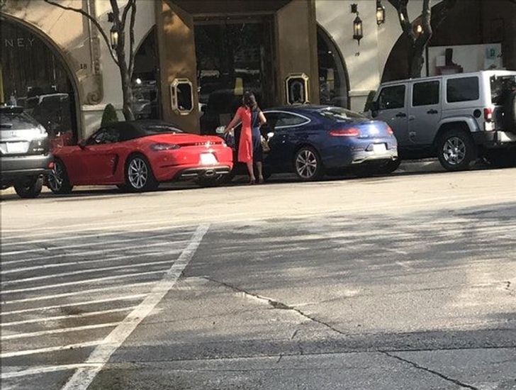 Zastanawiamy się, czy ta kobieta jest właścicielką obu tych samochodów…