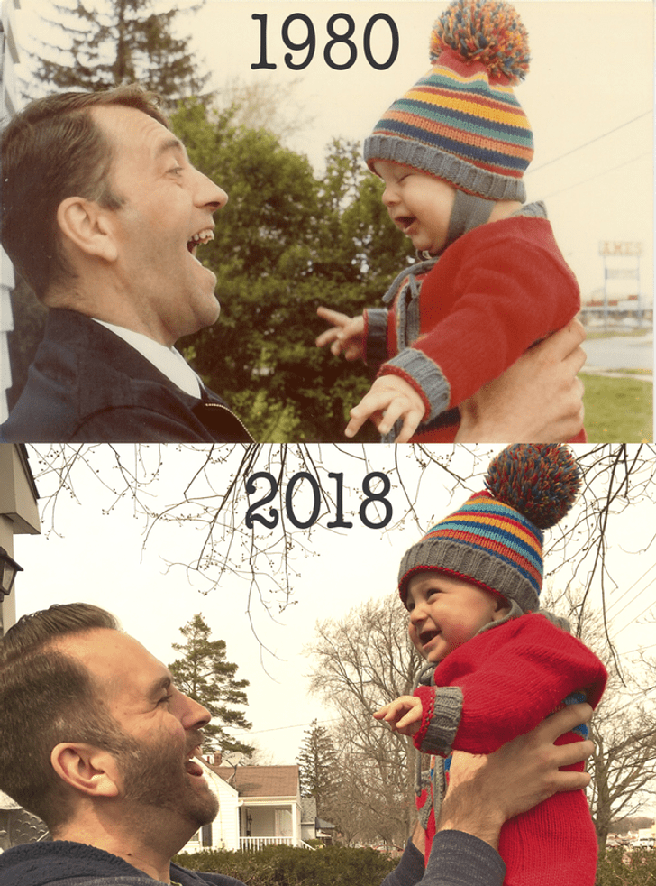 6. „Mój ojciec i ja w 1980 roku oraz mój syn i ja w 2018 roku”.