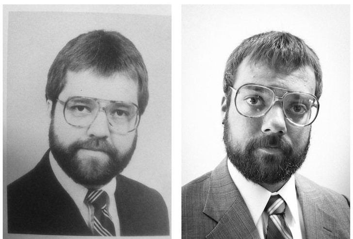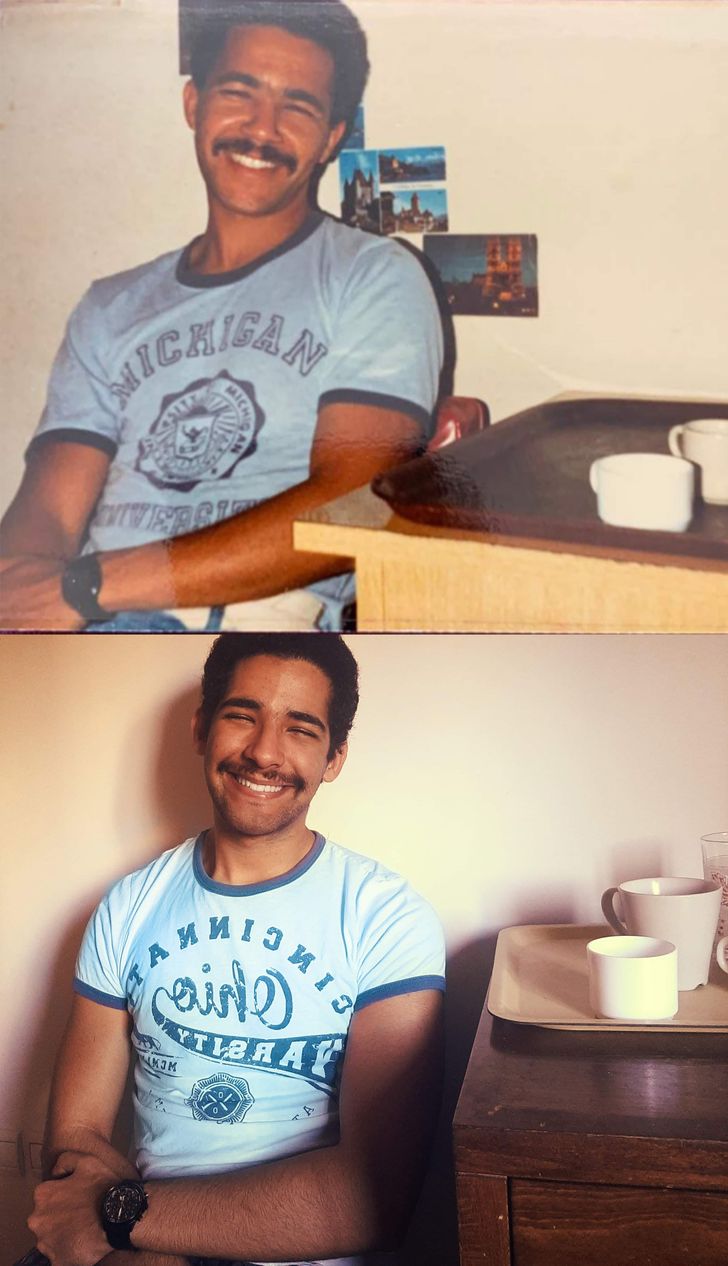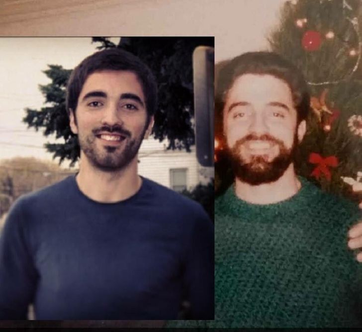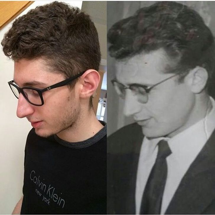 19. „Mój tata i ja – obaj w wieku 24 lat i w tych samych okularach”.