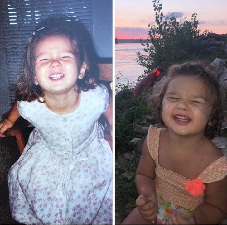14. „Moja córka w wieku 2 lat w 1998 roku po lewej i moja wnuczka w wieku 2 lat w 2019 roku po prawej”.