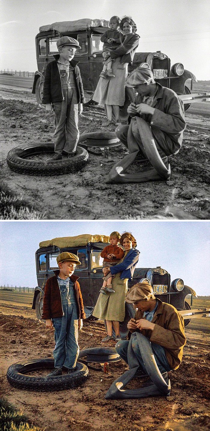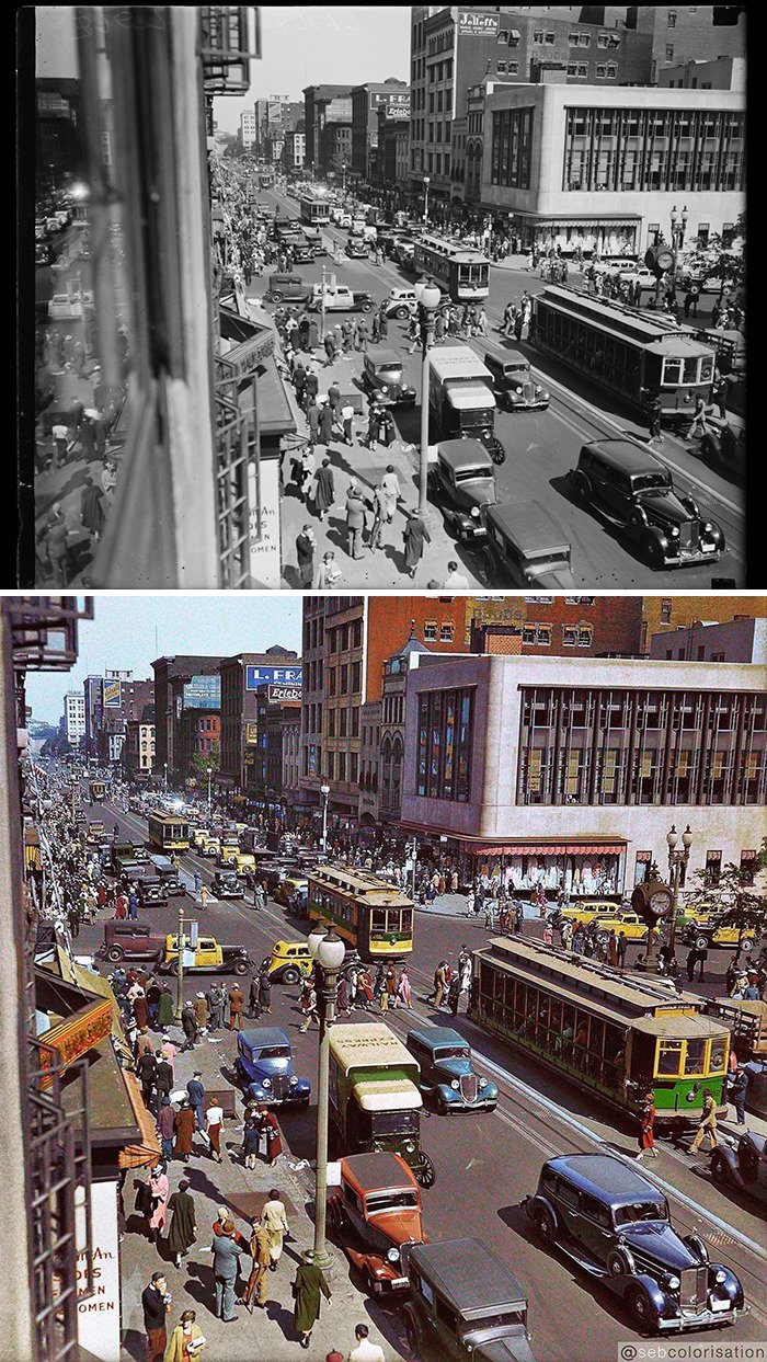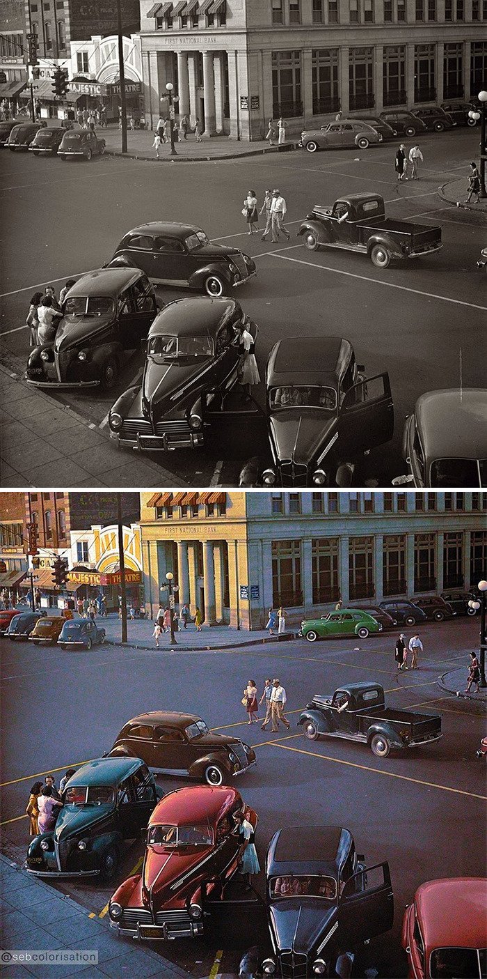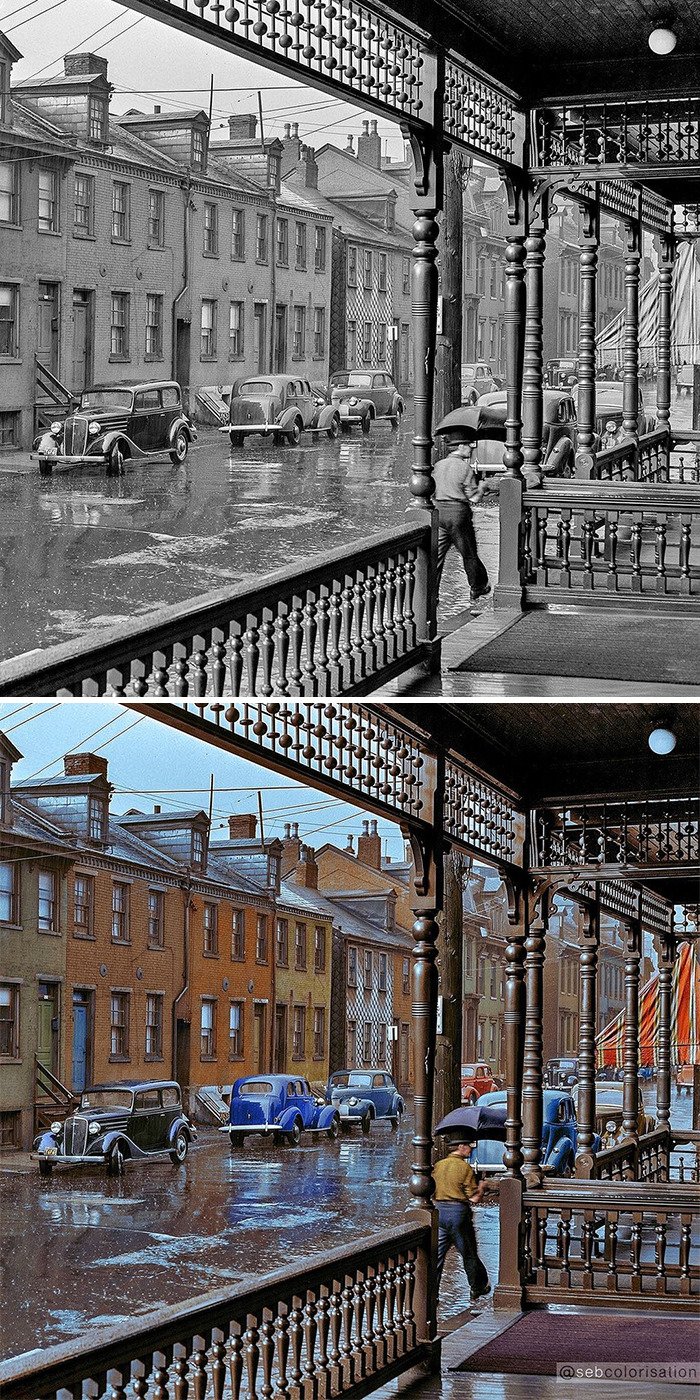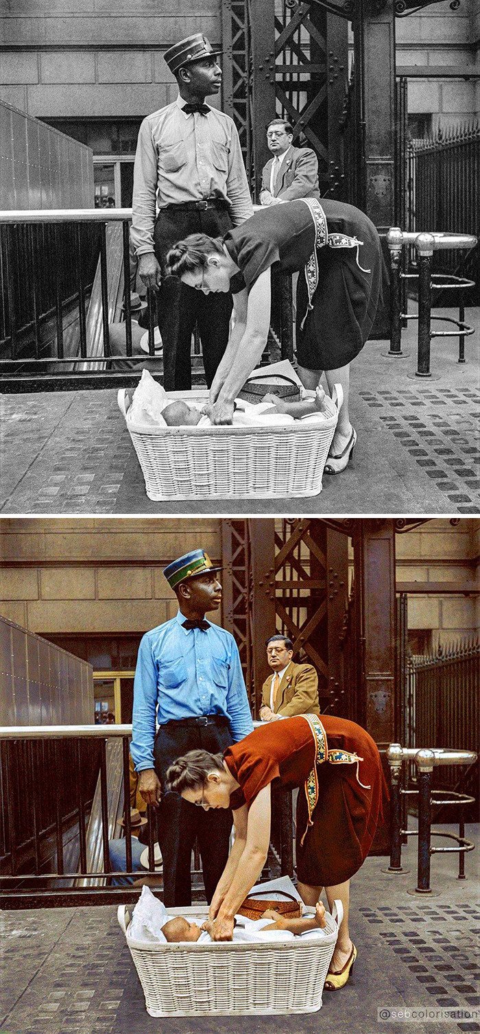 Artysta grafik Sébastien de Oliveira używa Photoshopa, aby pokolorować stare fotografie i nieco je ożywić. Dzięki temu ludzie na zdjęciach wyglądają bardziej realistycznie, a obrazy stają się o wiele bardziej interesujące.