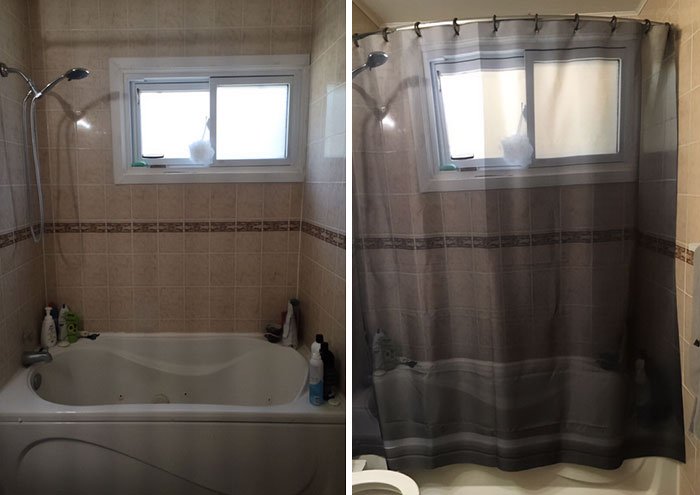 22. „Gdy moja dziewczyna wyjechała na cały dzień, postanowiłem zmienić zasłonę prysznicową na nową. Mam nadzieję, że będę w domu, jak wróci, żeby widzieć jej reakcję.”