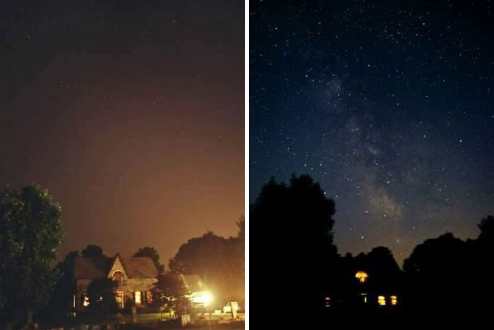 20. Tak wyglądają gwiazdy w typową noc w porównaniu z nocą podczas awarii prądu.