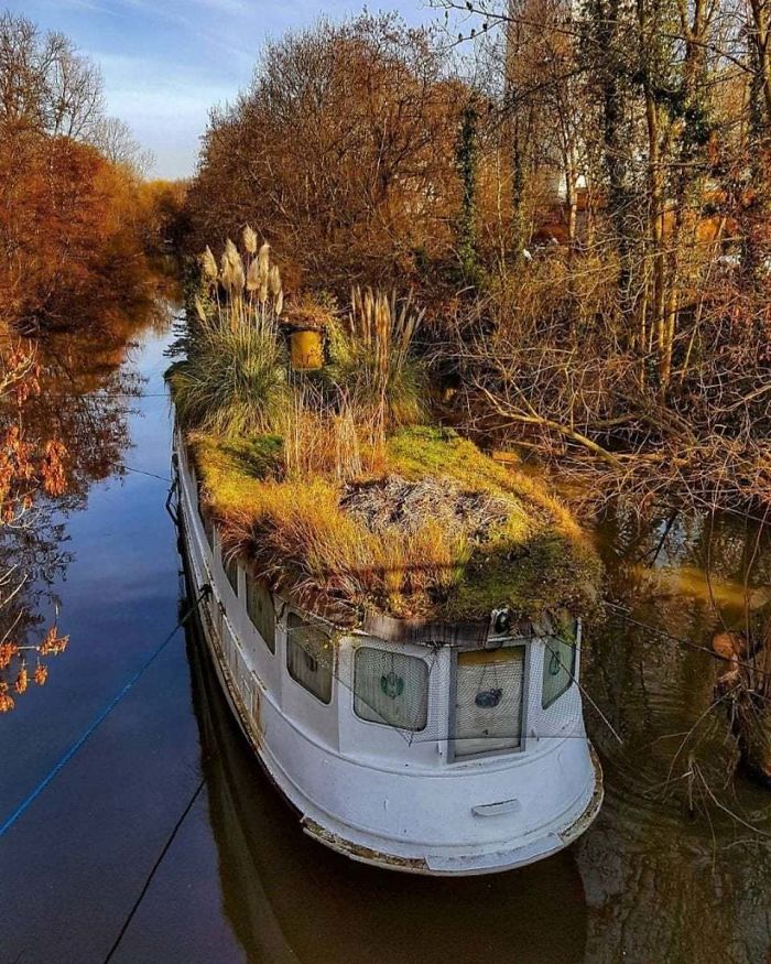 17. Co się dzieje, gdy natura przejmuje kontrolę – łódź na rzece we Frankfurcie, Niemcy: