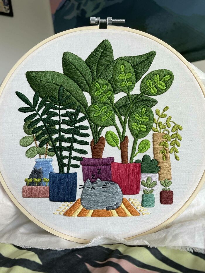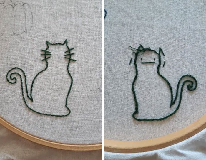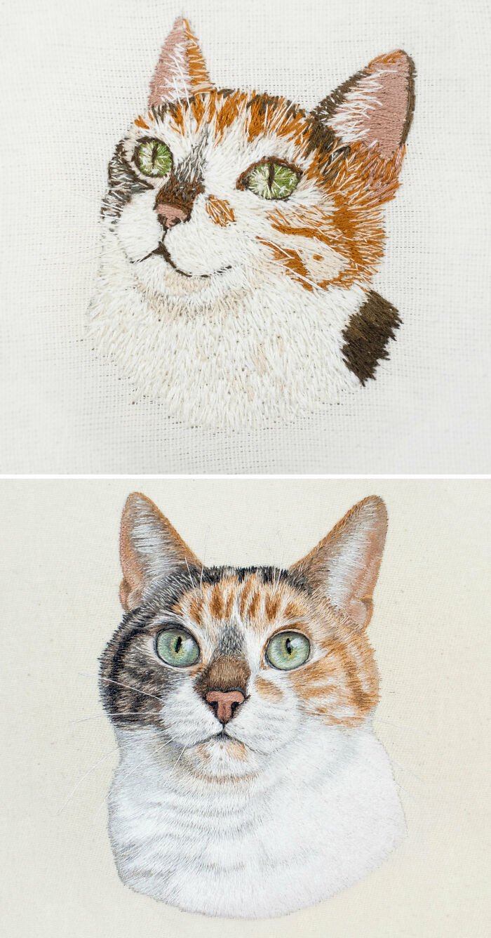 16. „W tym roku bardzo starałam się ulepszyć moje haftowane portrety kotów i jestem zadowolona z efektu końcowego. Kilka razy prawie zrezygnowałam i zaczynałam od nowa, ale w końcu wszystko się udało.”