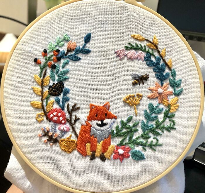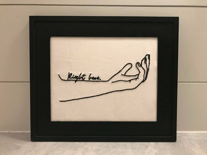 19. „Nie jestem zbyt kreatywna, ale moja terapeutka zasugerowała mi haftowanie, aby pomóc poradzić sobie z moimi zaburzeniami lękowymi. Kiedy zaczęłam ten narysowany wcześniej wzór, nie wiedziałam nawet, jak trzymać igłę. Popełniłam wiele błędów, ale i tak jestem zadowolona!”