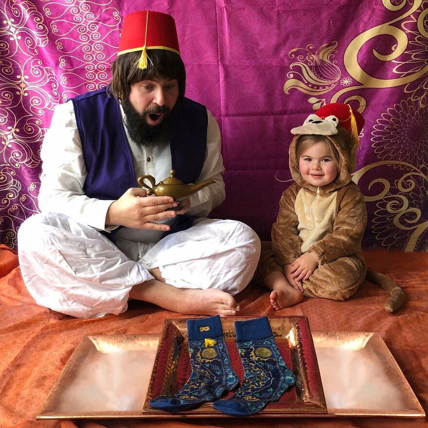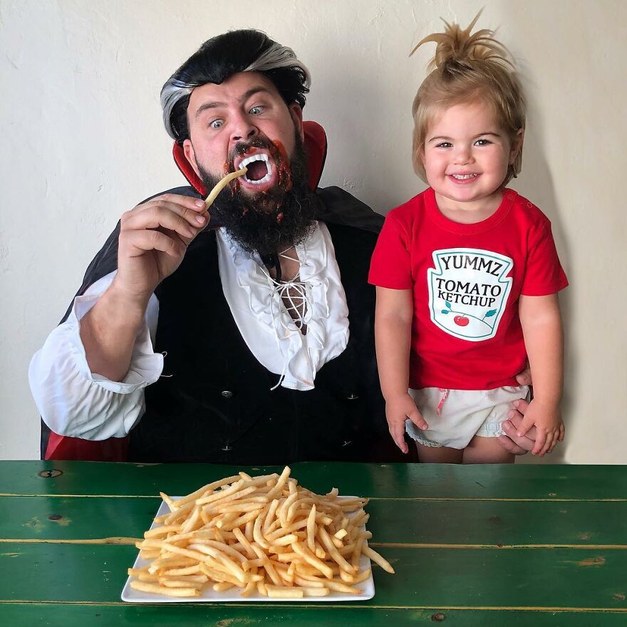 Pięć lat temu Sholom Ber Solomoa zrobił furorę w sieci za sprawą zdjęć, na których wraz z córką wykonuje różne zabawne czynności. Więź taty i córki wciąż jest silna do dziś, a teraz do udziału w swoich szalonych sesjach zdjęciowych włączają także siostrę Olivię, urodzoną w 2019 roku. Ich wspólne zdjęcia przedstawiają przede wszystkim przebieranki, i to całkiem oryginalne: od szopów jedzących przy śmietniku po syrenki przy basenie.
