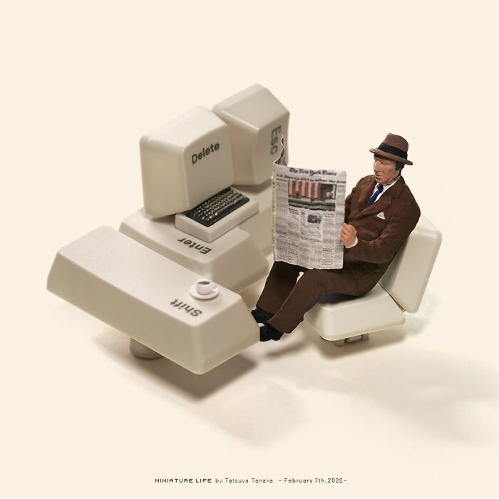 Artysta tworzy i fotografuje te drobne światy już od 2011 roku. Zdjęcia są codziennie aktualizowane na jego stronie internetowej, dzięki czemu wśród jej miłośników zyskała ona już nazwę „Miniaturowego kalendarza”. Jak wyjaśnił Tatsuya Tanaka, „codzienne zdarzenia widziane z miniaturowej perspektywy mogą przynieść nam wiele przyjemności”, a zatem zapraszamy Was do odkrywania tego magicznego wszechświata razem z nai. Mamy nadzieję, że to poprawi Wasz dzień!