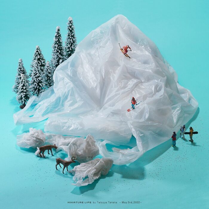 Japoński artysta Tatsuya Tanaka wyróżnia się na skalę światową swoimi maleńkimi cudami sztuki zwanymi dioramami. Tworzy on miniatury ze zwykłych przedmiotów codziennego użytku, nadając im nowe znaczenie. Tutaj kostki cukru, plastikowe torby i kubki, a także wiele innych przedmiotów, stają się lodowymi górami, tajemniczymi rzeźbami i absolutnie wszystkim, co tylko można sobie wyobrazić.