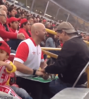 14. Ten wspaniały ojciec zabrał swojego niewidomego syna na mecz piłki nożnej i w trakcie „pokazywał” mu, co się dzieje na boisku.
