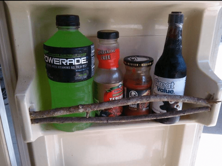 9. Brak półki w lodówce to nie problem – wystarczy patyk i odrobina kreatywności.
