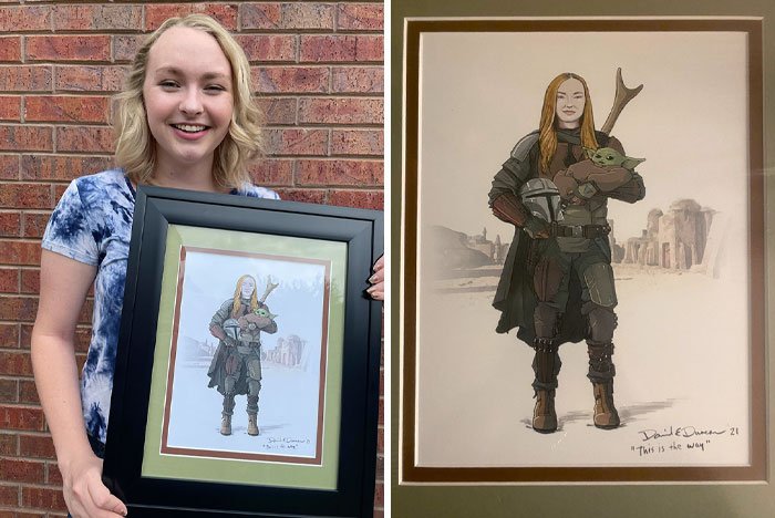 23. „Na moje urodziny w tym roku mój tata zlecił jednemu z artystów (którego zna z liceum) narysowanie mnie jako Mandalorianina.”