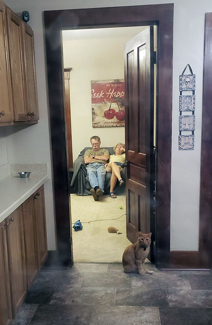 25. „Mieszkam za granicą i poprosiłem moich rodziców, aby uczcili urodziny mojego psa, ponieważ jestem daleko. Mój tata wysłał mi to zdjęcie zatytułowane „Impreza urodzinowa”.”