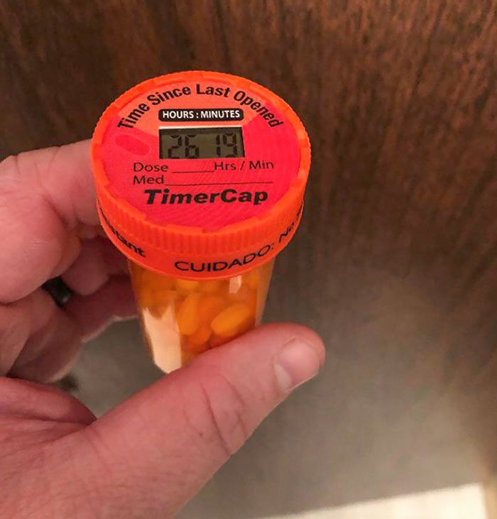 17. Pojemnik na tabletki, który przypomina, kiedy ostatnio był otwierany.