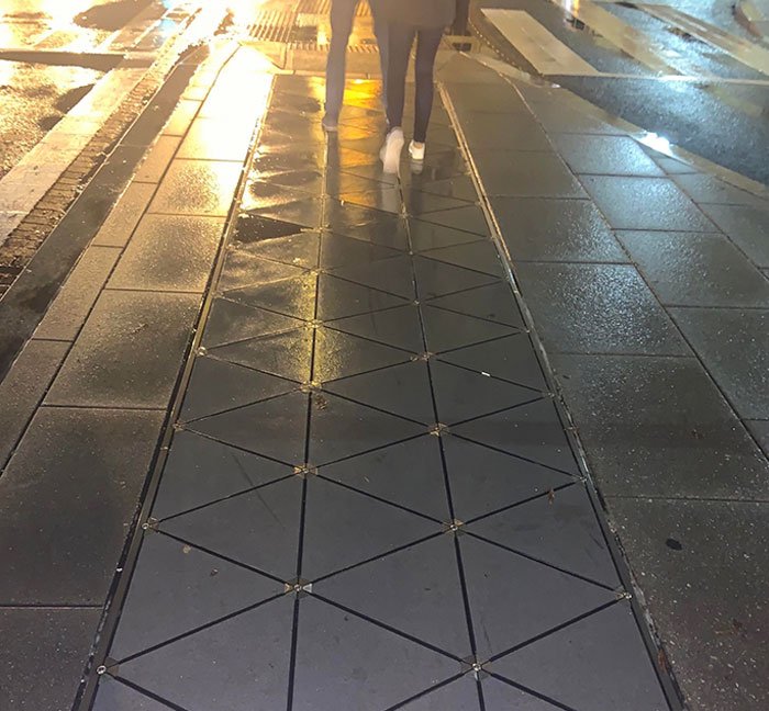 42. Ten kinetyczny chodnik generuje energię elektryczną, gdy po nim chodzisz.