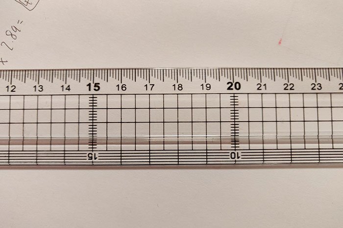 44. Ta linijka ma kaskadowy znak milimetra, który sprawia, że łatwiej go odczytać.