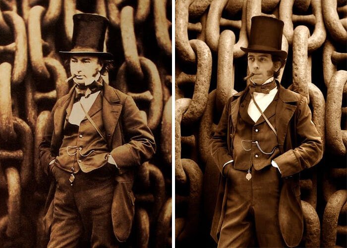 13. Isambard Kingdom Brunel (z lewej, 1857 r.) i jego praprawnuk Isambard Thomas (z prawej).